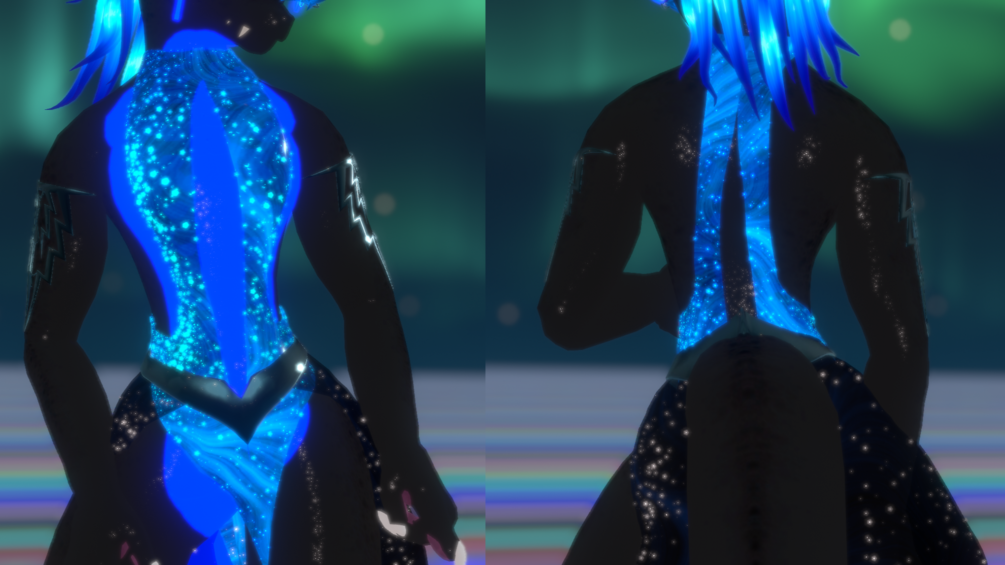 Get rave ready with this fashionable outfit for the Durgarra model! Working entirely on Poiyomi Shaders, this outfit provides both beauty and chaos with the use of emissives, audio link, and of course glitter!